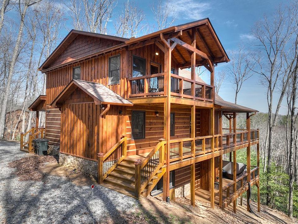 Price Improvement! GATED...PRESTIGIOUS STANLEY CREEK MTN DEVELOPMENT. PREMIER BUILDER Anthony Falls (ABF Inc.) used top quality materials & finishes in this home. 3,040SF. Located in the ASKA ADVENTURE AREA: hiking, waterfalls, fishing, tubing, kayaking! The finishes are like beautifully finished fine furniture. This isn't just our opinion, read the reviews of the previous vacationers. The home sits beautifully on a gentle grade halfway up this elite gated community & located just two miles from the TOCCOA RIVER RESTAURANT. This jewel of a home offering gorgeous soaring cathedral ceiling with tongue & grove beams, hardwood floors, stone fireplace (1 of 3!). Enormous casement windows situated to observe the LONG RANGE MOUNTAIN VIEWS from almost every room in this gorgeous abode. A true gourmet kitchen with all stainless steel appliances and a stove with gas burners, lots of storage, granite of course, gorgeous refrigerator, custom cabinets...the list goes on. Designed for either a vacation rental investment or full time living with large bedrooms and closets which includes one bedroom on each level, tile baths/showers, glass doors, dual vanities, and tile flooring. Basically a primary bedroom on all three levels with the upstairs bedroom offering it's own private deck to enjoy those fabulous sunrises. The terrace level offers not only the 3rd primary bedroom but, a spacious 2nd living space with a complete wet bar, second stone fireplace (2 of 3), arcade games, poker table, pool table, pingpong table, and just outside the door is a hot-tub!. Whether you enjoy the outdoors or indoors, this home offers so many areas for rest, reflection, and relaxation. The outside of this lovely home doesn't fail to offer several areas of cov. porches, 3rd fplc., quiet private. This home is being offered FULLY TURN KEY WITH UPSCALE FURNISHINGS. Located 18 minutes to downtown Blue Ridge.*** OPEN UP LONG RANGE VIEW EVEN MORE WITH PURCHASE OF LOT BELOW FROM DEVELOPER FOR $60,000.