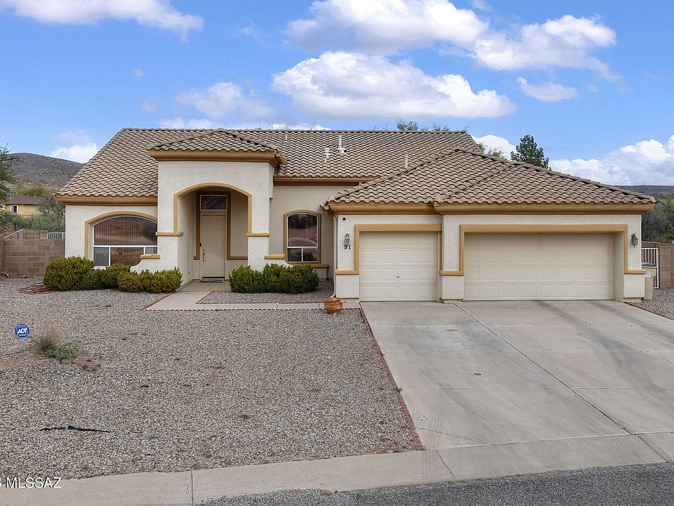 Located in the heart of Rio Rico with easy access to the freeway, shopping, and dining, this well-designed home offers comfort and functionality throughout. The spacious primary suite features a soaking tub and separate shower, complemented by three additional bedrooms and a full guest bathroom. Enjoy formal living and dining areas, plus a kitchen with breakfast bar and nook that opens to the family room with a cozy fireplace--perfect for everyday living and entertaining. The backyard includes a covered patio and block wall for added privacy. Complete with a three-car garage. A must-see--show and sell!