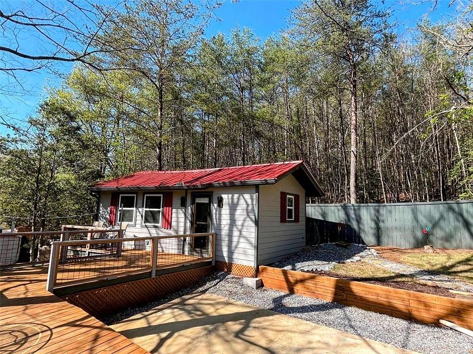 One of the most spacious lots in Paradise! It has been professionally landscaped with a tranquil waterfall, a firepit area and will accommodate any size camper with water and electrical hookups! The cabin is decorator gorgeous! It was stripped to the frame and totally rebuilt! There is too much to mention it all. Inside you'll find Lifeproof Chiffon Lace Oak easy care, plank style flooring, and New Broyhill sleeper sofa. NEW Kitchen cabinetry, countertops and backsplash, sink and faucets, Stainless Maytag Dishwasher, Refrigerator, Microwave, and a Frigidaire Electric Cooktop. There is a Stone surrounded 36-inch Electric fireplace to cozy up to, Hunter ceiling fans and new lighting, new Samsung Mini Split, new sheetrock and tongue and grove accent walls with new insulation in walls and ceiling, plus walls of double pane windows with 2-inch Levolor blinds, and screens. The full bath has new plumbing, Glacier Bay toilet, vanity, faucets, Aqua shower and a 19-gallon water heater. The exterior has a new metal roof that was quality done with plywood, new gutters and gutter guards, freshly painted exterior siding, front door and screen, an L shape 40x10 and 21x9 deck to enjoy, and exterior lighting too! With everything being all NEW and decorator gorgeous, you must come see this one! Come make a lifetime of memories here! Located just minutes to Cleveland, Helen, Dahlonega, Clarkesville, and Blairsville. Shop! Dine! Fish! Hike! Enjoy vineyards and more! Paradise is a vacation resort community with NO FULLTIME LIVING available. Listing agents own properties in this park, and it is GATED, so call for access to see or more info.