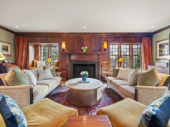 Exceptional Tudor-style residence majestically sited on an elevated 1.17 acres in sought after Wellesley Farms! The breathtaking curb appeal and beautiful approach are enhanced by the meticulously landscaped grounds, vibrant blooms, mature plantings and a terraced expansive lawn. This stunning home has been reimagined by renowned architect Patrick Ahearn. Inside, the light & bright interior unfolds with refined grace and sophistication. Rich hardwood floors and intricate woodwork imbue each room with a sense of character and craftsmanship. A perfect blend of formal and informal spaces creates a sense of balance perfect for today's living standards. Relax and unwind in the sun room, work from home or host large gatherings in the banquet size dining room. Sip lemonade on the patio or read by the fire in the living room. With its blend of historic charm, modern amenities, and picturesque surroundings, this Tudor home stands as a testament to timeless beauty and architectural excellence.