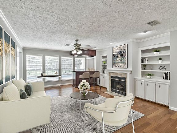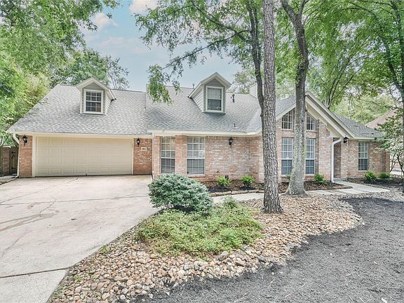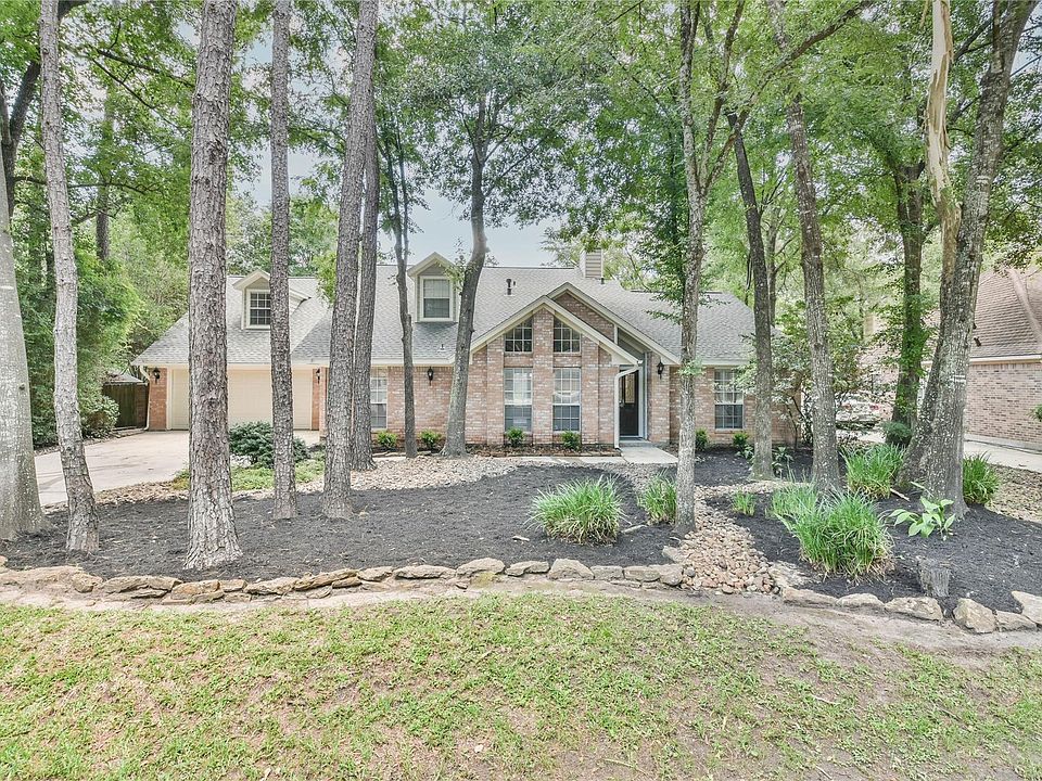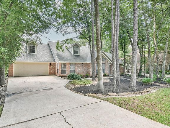 Great opportunity in Woodlands Grogans Mill! Premium oversized, wooded lot with water views, so close to the golf course. Fresh neutral paint, Brand new carpet! New roof 2019. Step out back to a private pool, spa, spacious covered deck for lots of outdoor fun/entertaining! Outside mounted smart TV included. New Pool Plaster and Wrought Iron Fence 2020. This home is impeccably maintained. Slate tile flooring entry, kitchen, dining. Study w/double French doors. Hardwood in Den, Study. Kitchen updated w/Granite, pot filler, recent new dishwasher, stainless DCS high end gas range/oven. Bay window breakfast area overlooks front yard. Fireplaces in both the dining area and the family room. Amazing views from all the back windows! Primary suite down w/private back door to pool. Updated ensuite bath with vanity, bowl sinks, newer tile, jetted tub, frameless glass shower. Upstairs offers 3 bedrooms plus bonus room inside 4th bedroom and 2 full bathrooms. Fridge included.
