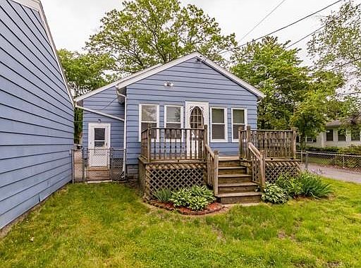 Well maintained ranch featuring two bedrooms with hardwood floors, updated kitchen with ample cabinet space, built-in hutch, tile backsplash, recessed lights, newer appliances and skylight,dining area with hardwood, living room with hardwood, wood stove, ceiling fan and crown molding, four season porch that opens to a large deck overlooking the fenced-in professionally landscaped yard with irrigation system, 1 car garage. Updates include newer roof, newer windows, doors, paint, central a/c, fixtures, and more! Perfect for someone looking for one level living! No showings until the first open house Sunday June 2nd from 11:00 - 1:00. Any and all offers will be reviewed Tuesday at 5:00 pm, seller reserves the right to accept offer prior to that time.