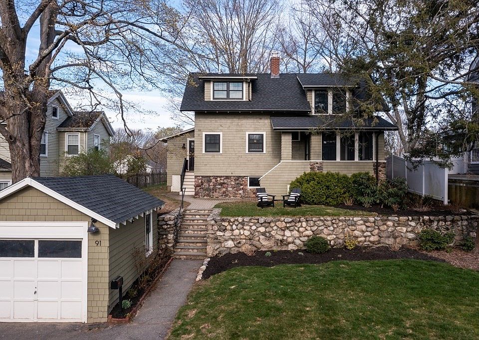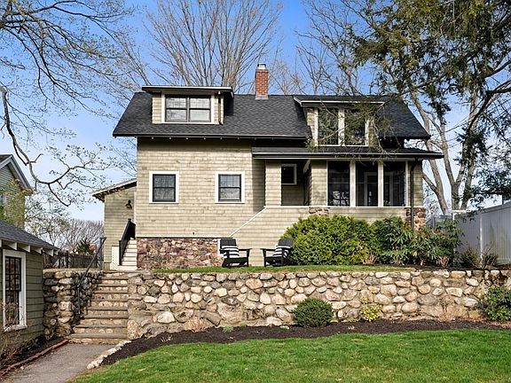 Country Club location! Enter this beautifully renovated Col through the updated three-season porch, a perfect place for that morning cup of coffee, or through the mudroom w/attractive built-ins for storage. The oversized eat-in K offers plenty of counter space & cabinets as well as direct access to a new oversized deck for indoor/outdoor entertaining. A spacious LR, as well as a sun-drenched FR, or DR, & full bath round out this floor. Upstairs offers multiple primary BR options. One overlooks the backyard w/a bank of windows & skylights. The other option offers an ensuite bath. A spacious 3rd BR completes this floor. New-2021-Andersen windows in most of the home, including front porch & slider, Azek deck & freshly painted exterior. 2020 saw a new Architectural roof, including garage, & reconstructed chimney. Your oasis awaits in the large, mostly fenced-in backyard complete w/patio, beautiful trees, garden & even a soothing waterfall. Detached garage. A+ location nr Downtown & train!