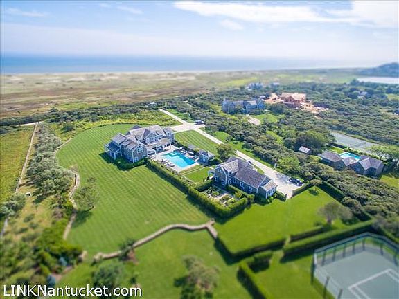 This Low Beach estate boasts some of the finest grounds on Nantucket, with lavish pristinely maintained yards and gardens to compliment the grand main house, guesthouse, pool, and tennis court. Step from the grand lawn across the threshold of the main house into a magnificent entry hall leading to a formal dining room, casual dining area, and multiple welcoming living spaces. Beneath the windows of the well appointed kitchen lie the flag stone patio and pool, at the other end of which sits a two bedroom guest house. Each of the five bedrooms is en suite, three having breathtaking ocean views and private decks. The classic feel of the home belies thoughtful modern details like Nest thermostats, automated shutters, and surround sound. This is a truly complete estate, wanting for nothing in the way of either comfort or convenience.