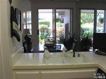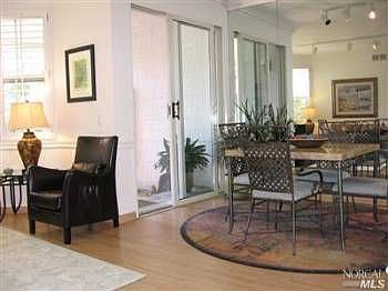 Delightful, spacious, bright, developer's model w/expensive upgrades--crown moldings, mirrored walls, plantation shutters, laminate floors, gas range; garage & carport; sliding glass doors to landscaped, Zen-like private garden w/brick patio w/fountain; 9' ceilings; AC; wash/dryer; master suite w/closet organizer; ground floor, single level; community pool, spa, tot lot, clubhouse; close to transportation, farmers market, Kaiser, Civic Ctr.