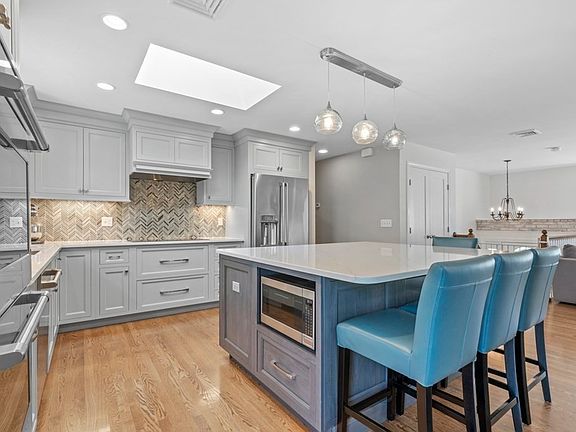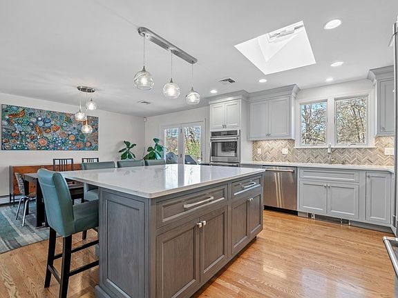 This 3 bedroom, 2.5 bathroom home has been gorgeously renovated by expert craftsmen, Wolfe Builders. The Shohola designed kitchen is an entertainer's delight & features a massive island, sleek quartz countertops, custom cabinets, stainless steel appliances, & hand blown pendant lighting. Just off the kitchen is a large composite deck that provides ample space for gathering and leads down to the fenced in, professionally landscaped backyard. The three bedrooms are located on the same floor & the primary suite offers a luxurious bathroom with walk-in shower. The main floor bathroom also offers a beautifully renovated space and features the convenience of a combo tub/shower & chrome fixtures. For convenience, the laundry has been brought up to the main level. Downstairs is a fully finished living space with wood burning fireplace, half bath & ample storage. Two car heated garage, Mass Save insulation, upgraded electric, A/C & more! OPEN HOUSE MAY 13th FROM 12-2.