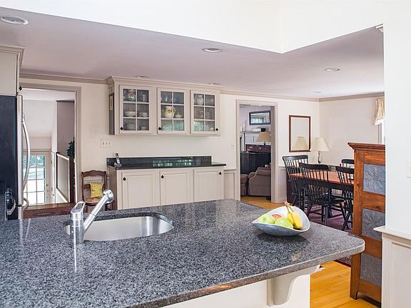 Nicely situated on 2 private acres on a cul-de-sac in a convenient location. This 4 bedroom, 3 bath Split Level Cape has been professionally updated over the years to provide plenty of flexible living space. Main level boasts an open floor plan with an eat-in kitchen with stainless and granite countertops and a slider leading to the screened in porch and deck beyond. Gleaming hardwood floors throughout! Living room with fireplace, oversized family room that can be used as one or two separate spaces. Owner's suite with cathedral ceiling, French doors to a Juliette balcony, a private full bath and two large closets. Upstairs there are two ample bedrooms and a private office. The walk out lower level features 980 sq' of finished space, ideal for extra guests and extended family, consisting of a large game room, bedroom, full bath and an office. There is also an enclosed tiled breezeway with a French door leading to the backyard and direct access to the two car garage.
