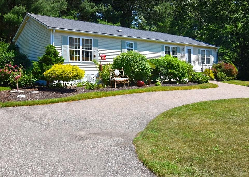 This new listing is a 3 bedroom, 2 full bath home located in the Village at Wordens Pond, a 55+, land leased community. The home is nestled at the end of a quiet Cul-de-Sac, surrounded by mature landscape and edged with forest. The Master Bedroom and on-suite are on one end of the home and there are 2 Large Bedrooms and a Full Bath on the opposite end. The kitchen is spacious and has recently been updated with new appliances and quartz countertops. Laundry/Utility Room is complete with new Washer and Dryer. The heart of the home, Living and Dining area, are an Open Floor Plan and lead to Large Rear Deck. Great Private back yard surrounded by wooded area. This property includes two sheds, both equipped with power, making it a great extra space for hobbies, work, or storage. Golfers take note * The Village is located adjacent to RI's newest 9 Hole, "Links" Style, Championship Golf Course, South Shore Village Golf Club.