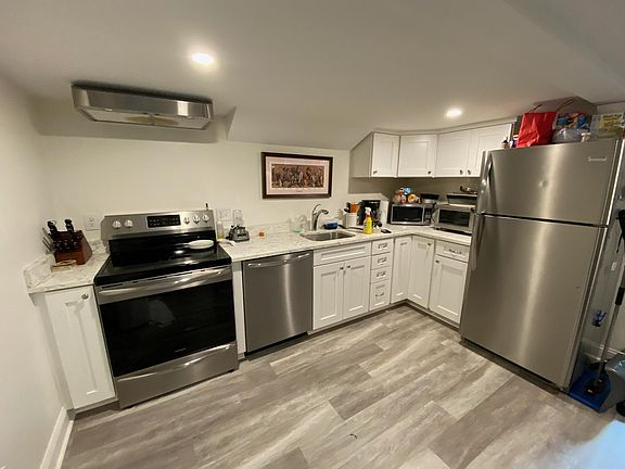 Updated one bedroom! This unit features 1 car off street parking, an eat in kitchen complete with stainless steel stove, refrigerator, dishwasher and disposal. Plenty of cabinets both in counter level and above. Good lighting from windows. Decorated with light laminate flooring. Sitting room has very generous closet as does adjoining bedroom. Fully insulated. Some storage area available. Laundry a couple of steps up from unit. Also large built in TV courtesy of Owner which can be viewed in sitting room or bedroom. Microwave courtesy of owner. Wonderful location for transportation, our new gorgeous library, close to Horn Pond and Woburn Center. One year lease. Tenant responsible for utilities. Tenant responsible to pay a half month's rent towards the realtor fee.