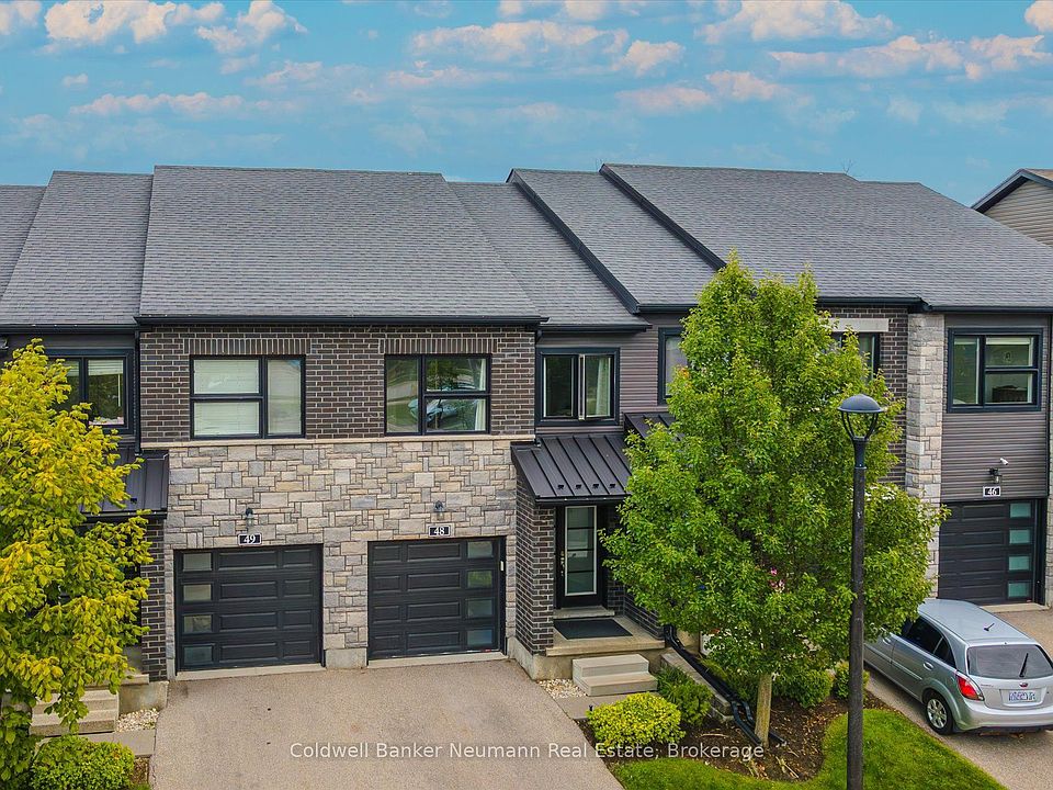 Executive Townhome Backing Onto Greenspace in South Guelph! Welcome to 48-91 Poppy Drive, a beautifully maintained 3-bed, 3.5-bath executive townhome perfectly positioned in the heart of South Guelph. Backing onto serene greenspace, this home offers the ideal blend of modern living and everyday convenience just steps from Pergola Commons with shopping, dining, banks, and more. From the moment you step inside, pride of ownership is clear. The open-concept main floor features a stylish kitchen with stainless steel appliances - the dishwasher, fridge and microwave are new as of last year - granite countertops, subway tile backsplash, walk-in pantry, and an island perfect for entertaining. The bright living room boasts modern hardwood floors and a walkout to your private deck - an ideal spot to relax and enjoy peaceful, tree-lined views. Upstairs, the spacious primary suite offers double closets and a 4-piece ensuite. Two additional bedrooms, another full bathroom, and convenient upper-level laundry complete the second floor. The fully finished basement adds even more flexibility with space for a rec room, home office, gym, or guest suite, plus an additional full bath. With direct access to major amenities, highways, and beautiful greenspace, this move-in-ready home is the total package. Don't wait - book your showing today!