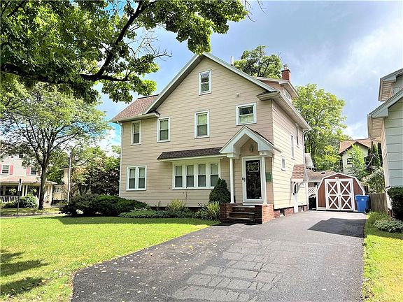 Absolutely gorgeous 1928 Colonial style home located in the historic Browncroft neighborhood adorned with many period features including leaded & stained glass, Gumwood & natural wood trim, glass doorknobs, real wood doors, crown mouldings, built-in fireplace bookcase & hardwood floors. Many updates include a contemporary, beautiful & functional cooks' kitchen with stainless appliances (2020), bathroom (2016), tear-off roof (2016), gutters & downspouts (2018) with Leaf Guards (2020), private outdoor patio, central air conditioning (2019) & 150 amp service (2008). Living spaces feature 3 ample bedrooms, walk-in master closet, enclosed porch & walk-up attic with plenty of room for storage, basement recreation room, workshop & even a dedicated fermentation room! This spacious home is centrally located. Walk or bike to neighborhood & larger City & County parks, quaint neighborhood shops, restaurants, service businesses, shopping, entertainment & so much more. Only minutes to public transportation, expressways, downtown Rochester, major employers, colleges/universities & easy access to the Finger Lakes & all points beyond. All offers will be considered at 6PM on Tuesday August 30, 2022.