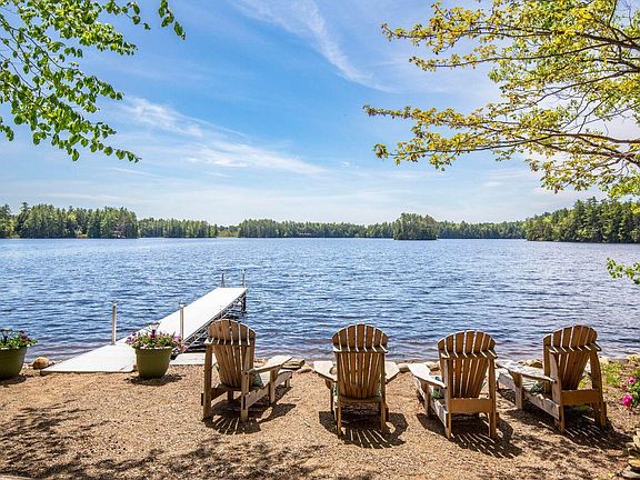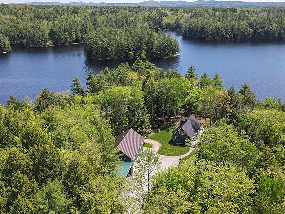 Located on peaceful and scenic Stevens Pond, Quigg Island is a quintessential lakefront property with 6± private acres and excellent southern views of the pond. This is the place to create lasting and lifetime memories with a charming house, a light and airy apartment, and a number of versatile outbuildings that offer a fantastic range of desirable living and storage space. The principal residence is a year-round cottage with water views, three bedrooms, and plenty of space for family and friends to visit and gather. The guest apartment, located above the detached garage, is an independent year-round space that is comfortable, bright, and open. Three recently built studio 'sheds' provide creative options for additional year-round living space. Each shed has been insulated and finished to high standards with quality cedar paneling on the interior walls; they could be repurposed in any number of ways. The landscape is mainly wooded and very private with established outdoor living areas, walking paths, lawn, gardens, and 1,775± feet of shorefront with two docks and a delightful sand beach. Located at the end of a private road, the property is accessible by vehicle year-round, combining the qualities of an island retreat with the convenience of mainland access.