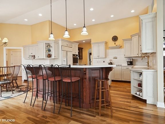 Welcome to this METICULOUSLY MAINTAINED brick ranch w/ FINISHED WALK OUT BASEMENT, ELEVATOR & 3 car garage, a true gem nestled on a beautifully landscaped one-acre lot! As you step inside, you'll be greeted by an OPEN FLOOR PLAN that exudes warmth and elegance with its GORGEOUS FRONT DOOR, volume ceilings, recessed lighting, white trim, and doors, as well as POPLAR HARDWOOD FLOORING that flows throughout the entire first level. The stunning Kitchen boasts 42" white custom cabinets, a HUGE ISLAND that's perfect for meal prep or casual dining, stainless steel appliances, a walk-in pantry & a convenient butler's pantry for all your storage needs. Gather in the cozy Family Room, complete with custom built-ins & a fireplace, creating a perfect ambiance for relaxing evenings. The Living Room is a bright and sunny retreat, flooded with natural light from the abundance of windows, and the Dining Room is perfect for entertaining with its gorgeous built-ins. The Primary Bedroom features high ceilings, a luxury bathroom & a spacious walk-in closet, providing a private sanctuary to unwind after a long day. The Second Bedroom is equally inviting, offering ample space and its own walk-in closet. Convenience meets luxury with the first-floor laundry & mudroom, designed for practicality & ease of use. Plus, don't forget the added bonus of an ELEVATOR providing effortless access to the HUGE walk-out basement with its high ceilings, loads of windows and GENEROUSLY SIZED 3rd Bedroom retreat with private bath and walk-in closet. There is also a second Kitchen for entertaining with ease, an additional family room that overlooks the beautiful patio and backyard, a fourth bedroom, along with a convenient half bath, provides plenty of space for everyone and an abundance of storage. Step outside to enjoy the beautiful landscaping, spacious deck or gathering around the fire pit on the patio, this outdoor space is sure to impress. This home truly offers the best of both worlds-luxurious living spaces inside and a picturesque oasis outside. Don't miss your chance to make this dream home yours!