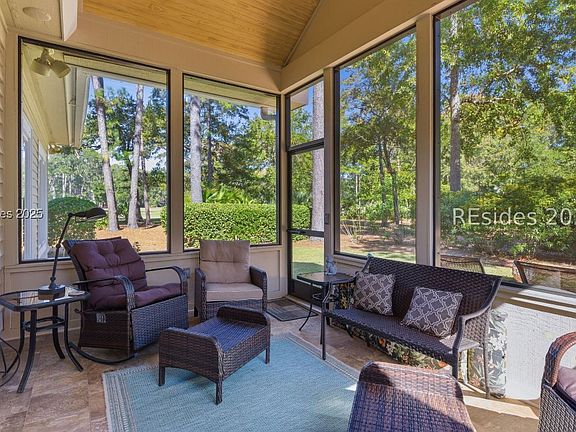 Cheerful, welcoming, and perfectly positioned along Moss Creek's North Course, this single-level home built by Walberry Contracting, Inc. offers timeless comfort and beautiful golf views across three holes. The spacious layout features a large primary suite with a spa-like bath, a bright living and dining area, and a gourmet kitchen with newer counters that opens to a cozy family room with built-ins and fireplace. A comfortable Carolina Room and screened porch invite easy indoor-outdoor living. Guests will enjoy a private ensuite bedroom plus 3 additional bedrooms. A surprise finished bonus room above the oversized 2-car garage provides ideal space for a hobby room, office, or storage. Enjoy all of Moss Creek's world-class amenities and Lowcountry lifestyle.