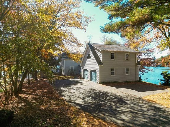 The best location on Lake Lashaway -- a flat, .79 acre peninsula on the northeast end, with southern breezes, lake sunsets and water on all three sides for ultimate privacy. Over 600 feet of lakefront, with large dock and deck for mooring boats, sunbathing, swimming, water skiing, fishing, sailing and other water sports. House is right on the water with views of the entire lake from large picture windows in front. All windows have water views. Three bedrooms, one and a half baths, fireplaced great room, living room, kitchen and a breezeway connecting the house to a two-story, two-car garage. The second floor of the garage has 680 square feet of unfinished space plus overhead storage, this could be converted to a master suite, in-law apt, home business or other. Driveway is paved with extra parking spots next to and in front of the garage. Don't miss this rare opportunity to own a year-round waterfront home on LAKE LASHAWAY, a fully-recreational 293 acre lake w/ many amenities.