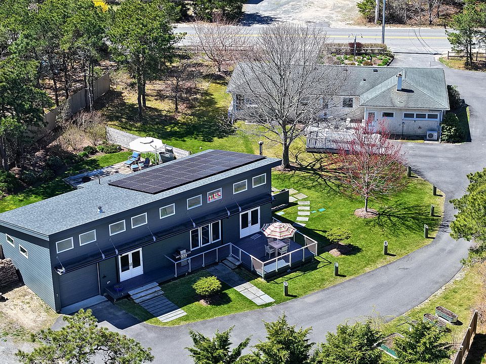 Nestled minutes away from the vibrant charm of Provincetown and New England's most coveted beaches, this exceptional Truro compound is a testament to the craftsmanship of renowned local custom home builder Deb Paine. The impeccably maintained and upgraded front building, offers 1,624 Sq.Ft., 2 bedrooms, an elegantly renovated kitchen and versatile mixed-use spaces ideal for dens and offices. Built in 2014, the back structure features modern design elements and functionality. Spanning 1,186 square feet, it boasts a luxurious bedroom and bath, as well as an open kitchen-living area, vaulted ceilings, wood burning stove, garage bay, solar panels powering the entire property and full basement. Outside, the property unfolds a myriad of possibilities, with multiple outdoor areas, lush gardens, storage sheds and workshop spaces. This mixed-use property, also presents developmental potential for an additional structure and even the prospect of condo conversion.