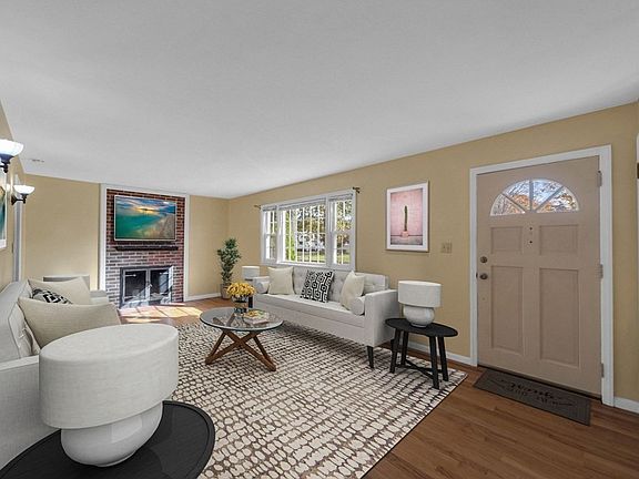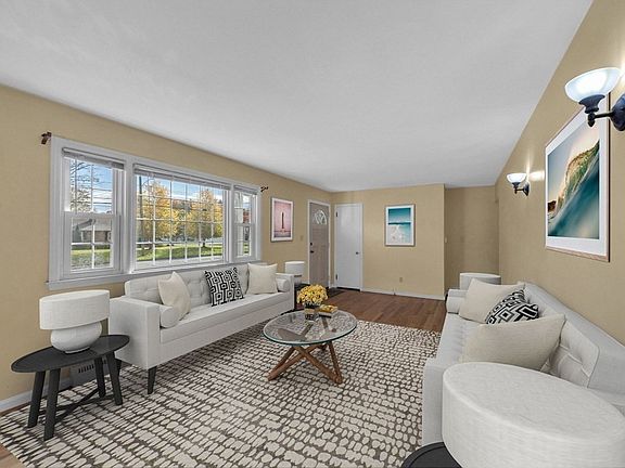 Great location near schools, park, business districts, airport, highway access and more. Comfortable 1,584 SF, 7 room, 3 bedroom 1.5 bath Ranch with breezeway family room & attached 2 car garage has it all! Updated windows & vinyl siding added in 2007, HVAC NEW IN 2023! You will love the floor plan flow that features a large vaulted ceiling family rm, fireplaced living rm, front bedroom big enough to fit a king size bed, darling built-in reading nook in one bedroom, kitchen/dining room combo. There's a multi-purpose room; w/exterior access to deck & backyard, which has a closet that backs to plumbing, a potential location for a 1st floor laundry. Full bath is tastefully appointed & half bath is handily located off the kitchen. Below boasts a sizable finished play/media room, great for a home gym. Huge work bench remains along with many storage shelves. Large, fenced-in backyard is perfect for pets or gardens & has a shed for extra storage. Amazing potential & excellent value here!