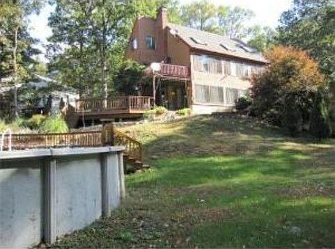 Stunning setting, unique floorplan, unusual landscape make this home a must see for those who want to break away from the every day. Walls of windows, soaring ceilings, hardwood floors, and warm fireplace creates a relaxed sense. The lower level offers a great entertainment space with family room boasting a wall of windows, bar area, 3/4 bath and sauna. There is an atrium door leading to a patio & multi-level deck to the above ground pool. Pond views and wild life sightings are common.