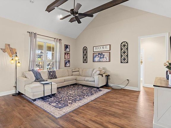 Welcome to Pecan Lakes! This gorgeous 4-bedroom, 2-bath home was built in 2018 and still feels brand new. Step inside to a spacious living room with a soaring vaulted ceiling accented by stunning wood beams. The kitchen is a showstopper, featuring granite countertops, a stylish backsplash, stainless steel appliances, and a breakfast bar perfect for casual dining. Durable LVP flooring throughout the home for a finish that's modern and low maintenance.