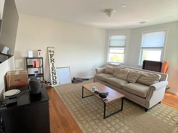 Amazing top floor Somerville 2 bed+ with city skyline views. This is a beautiful spacious apartment with hardwood floors, living room, and bonus extra room for an office. In unit laundry, central heat and air conditioning. Modern kitchen and bath. Back deck off the kitchen. One off street tandem parking space included. Excellent location, easy access to 93, minutes to Assembly Row, and downtown Boston. Tenant is responsible for gas and electric.