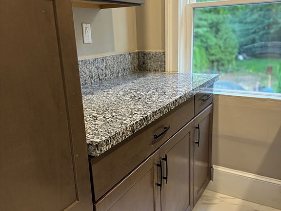 Updated kitchen with granite counters, stainless appliances, and a pantry