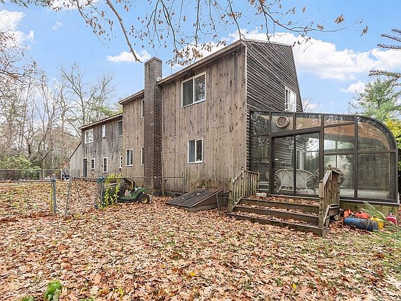 Large, unique contemporary 4-bedroom home with deeded lake rights and views of Hickory Hills Lake. Home will need some cosmetic work. Gunite inground pool professionally closed this year. Updated kitchen and new carpet in living room. Lots of potential to finish it off and add more living space. .