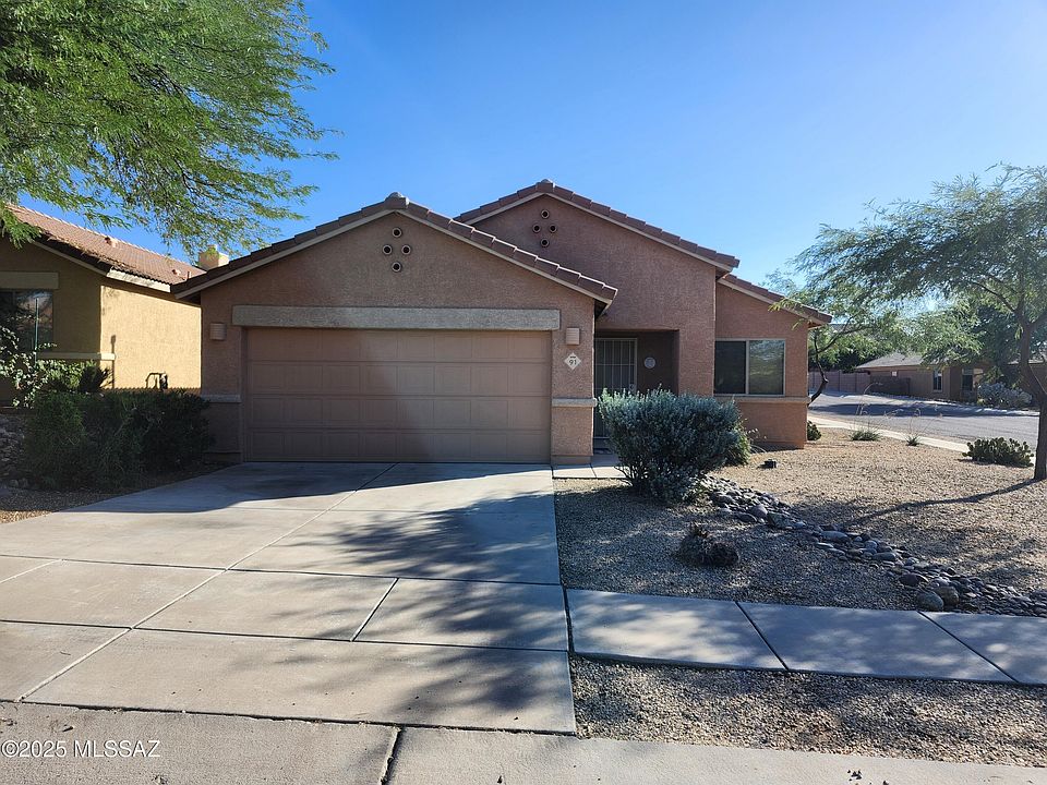 Experience peaceful living in this beautifully maintained 3-bedroom, 2-bath home nestled in a quiet community away from city noise and traffic. Located in the highly rated Vail School District, this move-in ready home features a private backyard with a covered patio and high-quality, pet odor-resistant artificial grass, perfect for relaxing or entertaining. Inside, enjoy vaulted ceilings, low-maintenance tile and vinyl plank flooring, and an open-concept layout filled with natural light. The kitchen offers stainless steel appliances, ample counter space, and a dining area. The spacious primary suite includes a walk-in closet and private bath. This home also features a laundry room with cabinets and a two car garage with overhead storage racks. Owner/Agent.