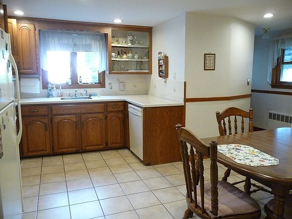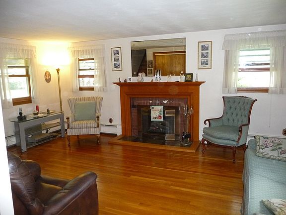 Central air, modern eat in kitchen, hardwood floors, natural woodwork and fireplace living room.