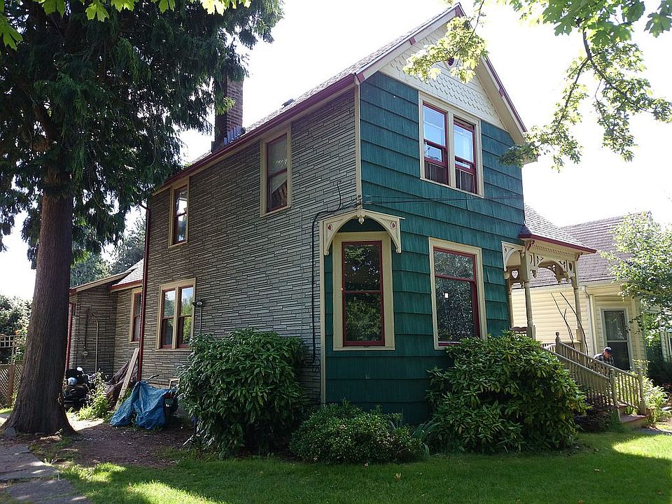 duplex, 2 bed one bath on main floor with kitchen and dining. 2 finished bedrooms and bath in basement. storage and laundry unfinished. top floor is a 600sqft studio full kitchen and bath, walk-in closet. 250 sq ft detached garage converted into art studio/cabin. back porch and very spacious backyard 500 sq ft of garden space. driveway fits 4 cars all in a row. lilac, plum, cedar, and maple trees