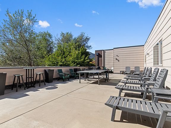 - Exterior features: Bicycle storage, Game Room, Garage parking is $125 a month., Heating: Electric, One Year Lease, Online Maintenance Portal, Online Rent Payment, Rooftop Deck, TV Lounge, View Type: Mountain