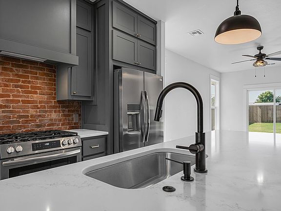 Privacy fenceCozy fireplaceCovered patioFull guttersHuge kitchen island