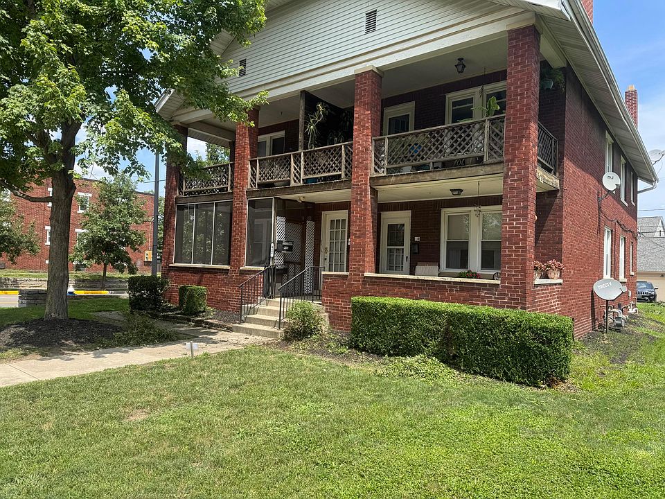 All brick! First floor has front porches and the second floor has balconies. Private parking in the rear. Full basement with washer/dryer hookup.