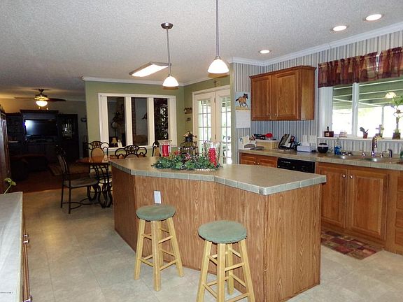Large three bed two bath home sitting on a full 6 inch slab and almost 2 acres. Home as a bonus room that could be used as a fourth bedroom. There's a patio perfect for family gatherings or quiet mornings as you drink your morning coffee. A few short steps away is a custom 60x40 metal building, shop (40x40) with a full kitchen (20X40) and bathroom giving the potential of a guest home. $1000 towards closing costs with preferred lender. Call today for a private showing!