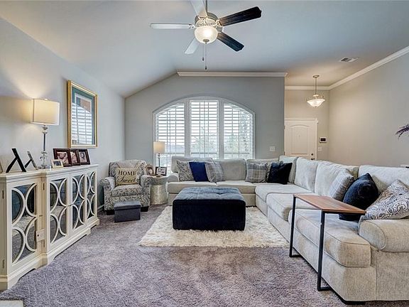 BEAUTIFUL 4 bed 2 bath Move-in Ready Home in Chickasha! When you enter your greeted by vaulted ceilings, an stone stacked fireplace with painted mantel, plantation shutters, an open concept floor plan to the kitchen & dining area, & TONS of storage! All bedrooms have walk-in closets! The primary bedroom is a suite and features double vanities, walk-in shower, soaking tub, vaulted ceiling & ceiling fan. The kitchen features stainless steel appliances, kitchen island w/ barstool seating, spacious dining area with bay window & bench, and granite countertops! The back yard is spacious with great covered patio! This won't last! Show today!