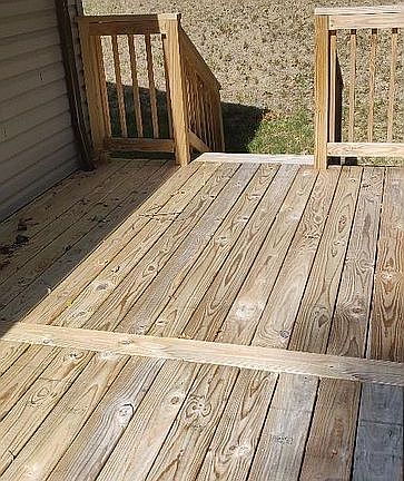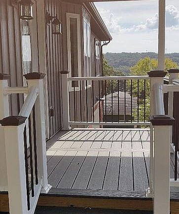 Board and batten vinyl siding with brick veneer; aluminum soffit, facia, gutters, and downspouts; composite decking; and vinyl windows for a maintenance free exterior.