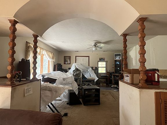 This rustic cabin offers 1 bedroom, 1 bath, an eat-in kitchen, dining room, and a spacious living room – all nestled on approximately 5.03 acres. Set back off the road, the property provides both privacy and a balance of wooded and open spaces.