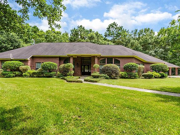 George Foreman is your neighbor! Enjoy this horse-friendly single story (4/3) SFH in Commons of Lake Houston! Every feature in this custom is high-end & an entertainer's dream! Home sits on 2.7 Acre lot w/ gorgeous curb appeal & landscaping; custom front door w/entry welcome you into the home; features include hardwood flooring throughout main areas; office/library; open floor plan w/family room, dining area/kitchen to IMPRESS the best! Family rm features stone fireplace, custom built entertainment center & wall of windows. The chef in your family will not stop cooking in this kitchen featuring high end appliances, wine fridge, cabinets, custom racks & shelving PLUS large pantry w/prep island; owner's retreat/spa bath; HUGE game room; 3 car garage. Commons of Lake Houston is a 3,400-acre master-planned lakeside community in Huffman, perfect for the outdoor enthusiasts. Embrace this idyllic way of life, known for its East Texas Pines & award-winning schools; less 35 min to Downtown.