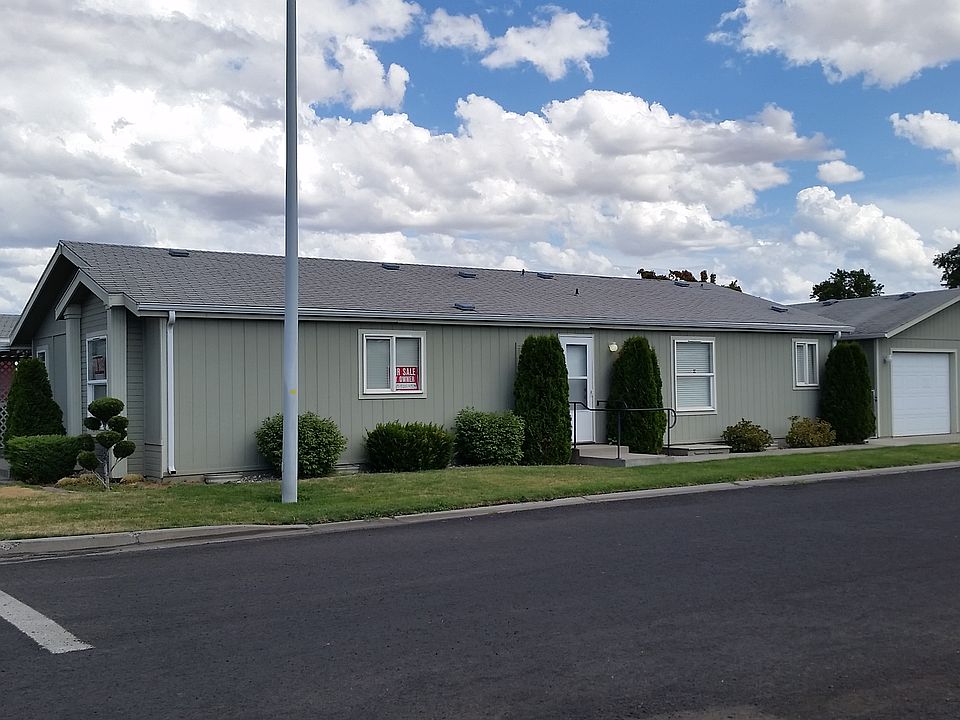 This a must see home, very nice and like new Golden West Manufactured home. This home has been newly painted inside and out. There are three bedrooms/or one could be the den or office. 2 bathrooms , new blinds, new toilets, new counter tops, new sinks and faucets. Two walk-in closets, Upgrade lighting, large garage with room for two cars plus storage. To make this property better there is underground sprinklers.