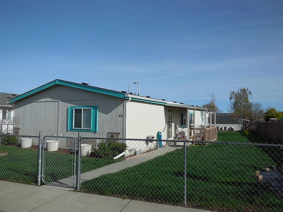 Nicer than new! This home comes with all the kitchen appliances plus the washer and dryer. Pet fenced yard and covered deck for morning coffee and relaxing. Storage shed/shop with power. Located in a 55+ park. You will enjoy living here!