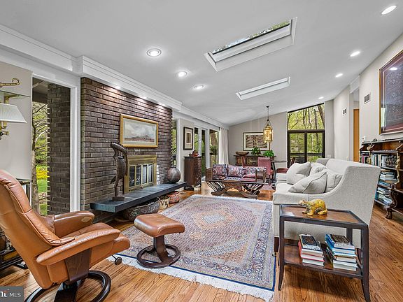 Set on 1.24 peaceful acres with stream, this home’s picturesque setting serves as a bucolic backdrop to be enjoyed by all. A perfect union of modern design and tranquility form a thoroughly original aesthetic that is architecturally inspiring both inside and out. The open design of the interior caters to today’s lifestyle and lends a feeling of inter-connectivity throughout the home. Feel yourself relax as you enter the bright and spacious, open-concept family and dining rooms with vaulted ceiling, gorgeous brick fireplace, and walls of sliding glass doors and windows that overlook the stunning landscape. The designer (Sue Komins) kitchen is nothing short of a showpiece. Vaulted ceiling with skylight, handsome countertops that match the custom cabinetry and stainless-steel appliances are only some of the amenities it offers! It also has a custom hidden dog feeding station built-in to the cabinetry. Leave the glass doors open to bring in fresh air from the expansive two-tier deck with incredible, private views. The sumptuous owner’s retreat includes 3 closets plus a walk-in closet, and a primary bathroom with an updated double vanity. Further examination reveals a lower level that is sure to impress. Heated tile floors and a brick fireplace enhance the open concept family room, study, and sitting room. There are two additional bedrooms on this level, which share a hall bath. For those seeking a peaceful and private environment without sacrificing close proximity to restaurants, shops, parks, major access routes and employers, this home is a must-see!