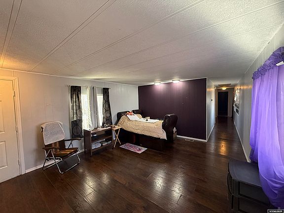 Snag this home for an incredibly low price of only $25000! This home is located in the Horizon Park off Gannett. Situated on an end lot, there is very easy access. There is roomy deck to sit and enjoy the beautiful view of the mountain. There is also a huge storage shed with extra high ceilings giving tons of space for storage. This 2 bedroom, 1 bathroom home boasts larger bedrooms to fit big furniture sets as needed. A perfect way to enter into home ownership in a very non expensive way. The furnace was just serviced and works wonderfully. Must be approved with the park. Please call Jesika Nacey with High Desert Realty 307-389-3058.