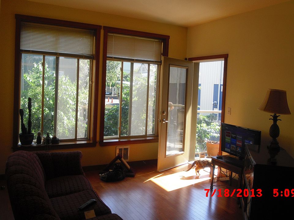 2 Bedroom 1 Bath Condo w/HW floors Secured Garage parking - Light and Bright 2 Bedroom condo with high ceilings and oversized windows, open floor plan, with wood and tile floors throughout. Offers Chef kitchen with stainless appliances, eating bar and abundant storage and food preparation space. Covered deck, Beautifully landscaped courtyard, gated entry, elevator, and underground secured garage parking with one assigned space. Ideal location close to Aquatic Center, Civic Field, Whole Foods, and I-5. Middle Floor on the end unit close to elevator. Parking space near elevator. Video is of a three bedroom unit in the same community, kitchen, living room and size of bedrooms is comparable to the 2 bedroom. Property available for showing end of the month. Move-in Costs: 1st Month Rent, Deposit $1500, $300 Admin Fee,, $45 Application. To apply: Please make application at our website (RLNE5571911)