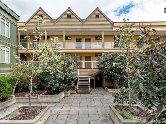 Great modern 1 bedroom unit in elevator serviced building. Very well planned unit/complex with plenty of room to move about. 9' ceilings in this 3rd floor unit make it seem open yet still cozy. You'll appreciate the secure building and communal secure garage - one parking space provided. Southern exposure on the deck allows you to indulge your green thumb and unit is just 10 blocks to Western Washington University. Welcome home.