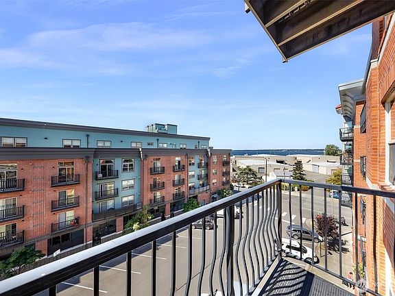 Enjoy Fairhaven living with northwest views from this 1269 SF corner unit at Harris Square. A corner unit is key-providing light from the hallwall & the open concept living, dining, kitchen.Open the slider to deck and enjoy the salt water air & views of Bellingham Bay. Kitchen as quality cabinets, new stove, newer fridge. The primary bedroom is generously sized w/walk in closet, ensuite bath, step in tiled shower. 2nd bedroom plus 3rd room offer flexible spaces.Hall bath has tub/shower combo. Pantry, hall closet &laundry room for storage. Secure building with elevator access and deeded parking in garage.Step outside to experience the charm of Fairhaven—restaurants & waterfront trails. Priced $57K under taxed value. Seller credit available.