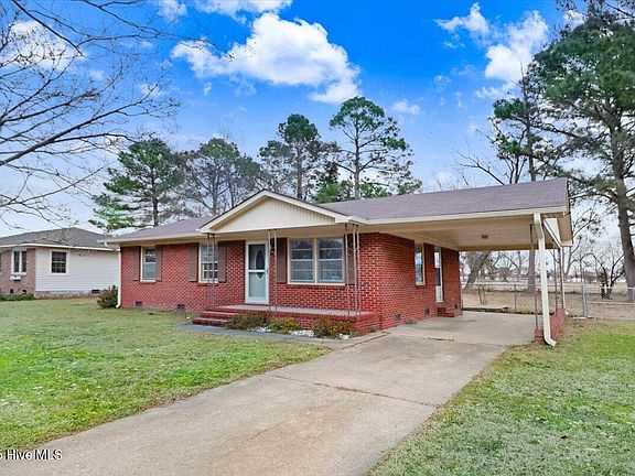 Cozy 3 bedroom1 bath brick ranch in Mount Olive. Attached carport, concrete drive, fully fenced backyard with wired shed. Enjoy the view of the large backyard from the new deck, sit around the firepit, or pickup the pecans from the loaded pecan tree. So many updates to this well loved home. Convenient location to the restaurants, shops, and park downtown, the University of Mount Olive, and the Mount Olive Pickle Plant. Only a short commute to Seymour Johnson Air Force Base and Goldsboro.