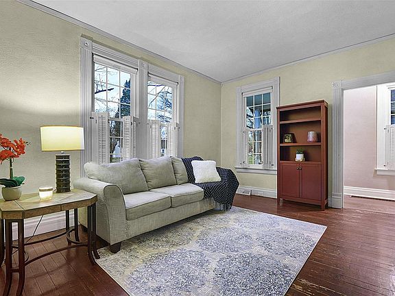 Fall in love with this two-story charmer! Located in historic Leclaire, its within walking distance to the picturesque Leclaire park, schools, shops, restaurants and MCT bike trails. Original hardwood floors, ornate woodwork, tall ceilings and large windows outfitted with interior shutters ooze character throughout. The spacious living room leads to the cheery, eat-in kitchen where you can access the updated deck for a relaxing meal and enjoy the large, fenced-in backyard with shed and an oversized one car garage. Two ample-sized bedrooms and a full bath are located on the upper level with the 3rd bedroom on main floor. Book your showing today before its gone!