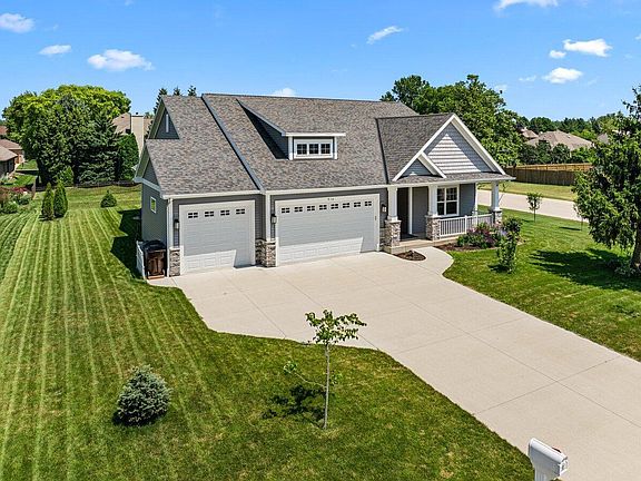 Welcome to this move-in ready, turnkey gem in Caledonia's sought-after Ravine Bay neighborhood! Close to Lake Michigan, this Oakland ranch model offers a smart split 3-bedroom, 2-bath layout with modern features and a spacious 3-car garage. The open kitchen shines with granite countertops, a large island, pantry, and Kohler fixtures. The primary suite features a walk-in closet, dual sinks, and a tile shower. Enjoy a beautifully landscaped yard with an orchard of trees, patio, fire pit, and pergola--perfect for cozy fall evenings. The basement includes an egress window and is stubbed for a 3rd bath, ready for your personal touch. Ideally located near the beach, bike trails, and close to amenities and schools. Schedule a showing to see this stunning home for yourself!