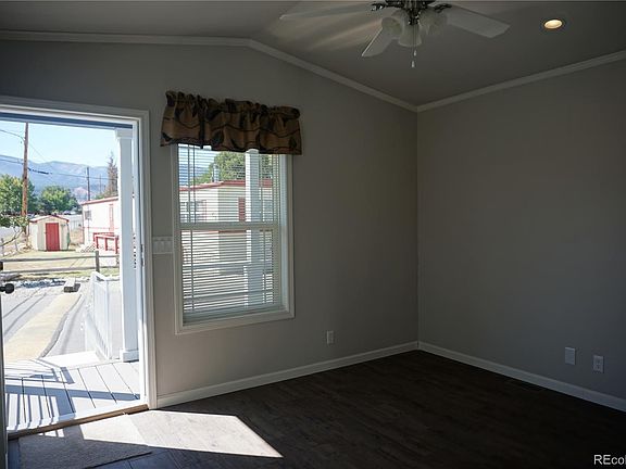 Brand new home in a quiet park at 910 J Street. Excellent location just 2 blocks from elementary school and a short walk along the bike path to downtown Salida. B1 is a custom built Champion home 2 Bedrooms, 1 Bath, 640 S.F. with many upgrades including a covered front deck, 2x6 walls, 2x8 joists and upgraded roof trusses for higher snow load. Bright and open kitchen and living area; rustic wood vinyl tile floors in kitchen and entry. Kitchen has full sized gas range, refrigerator, microwave and dishwasher, upgraded fixtures, ceramic back splash, upgraded wood cabinets and pantry. Glass entry doors with built in blinds and covered front deck with private lawn and use of oversize storage shed. W/D hookups with laundry room cabinets. Energy efficient features including natural gas forced air heat, LED lighting, Low-E windows, extra insulation and top of the line insulated skirting. On-site park manager helps ensure a safe and quiet living environment. Financing Available see supplements.