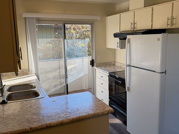 Super cute 2 bedroom, 1 bathroom upstairs unit. This apartment is conveniently located near shopping, public transit, and Hwy 101. This unit has been recently updated and has a private wrap-around balcony, on-site laundry, and a 1 car garage with a small driveway. Water and garbage included, tenant is responsible for PG&E. One-year lease is required.