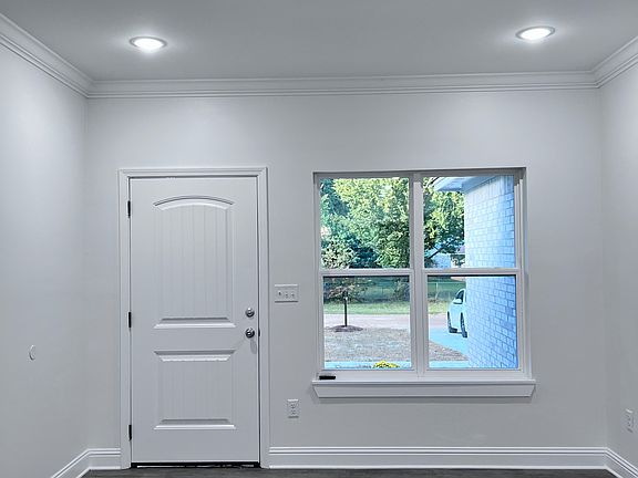 A warm and welcoming brick home featuring a clean light-brick exterior and a neutral gray roof that radiates classic Southern charm. With tasteful white trim and elegant gray shutters, this home offers a bright and balanced look that's easy on the eyes.